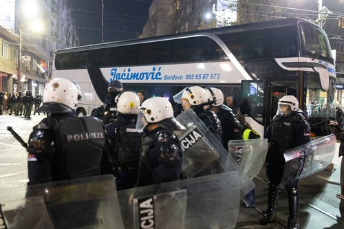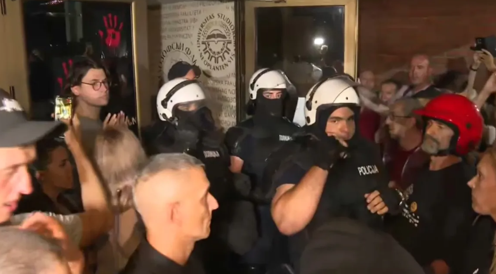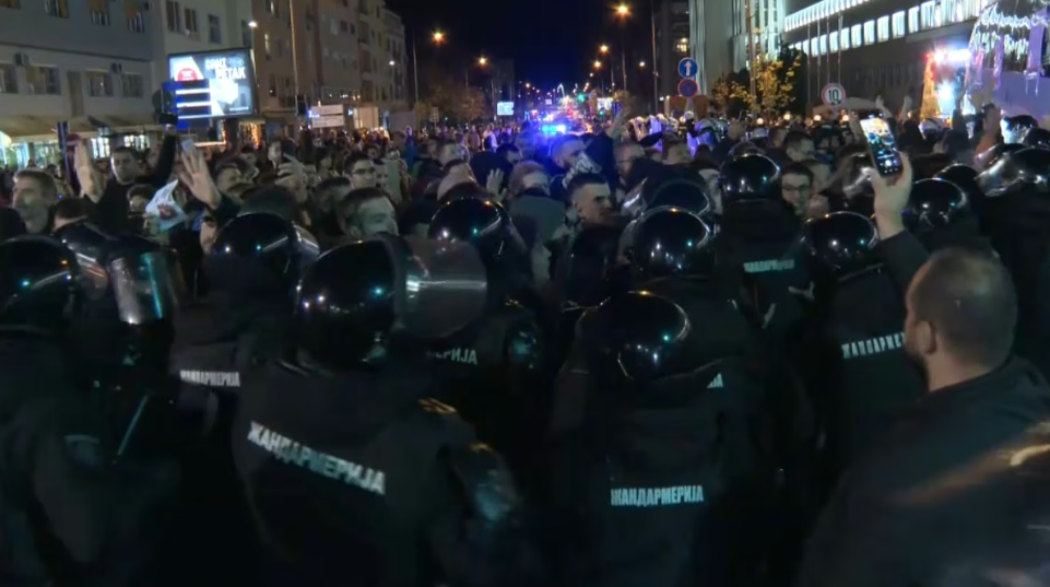 U Novom Sadu je večeras policija grubo gurala štitovima građane koji su pokušali da spreče odvoženje autobusa Milomira Jaćimovića ispred