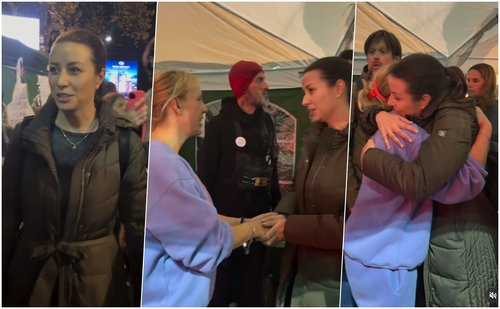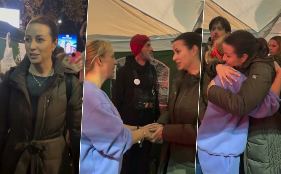 Evroposlanica Irena Joveva obišla je večeras Dijanu Hrku koja se nalazi u šatoru kod Skupštine Srbije, na uglu Takovske i