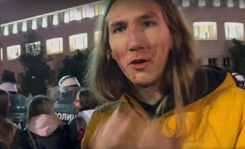 Student Vukašin Đinović povređen je danas tokom sukoba sa policijom u Novom Sadu, kada su pripadnici različitih jedinica grubo odgurivali