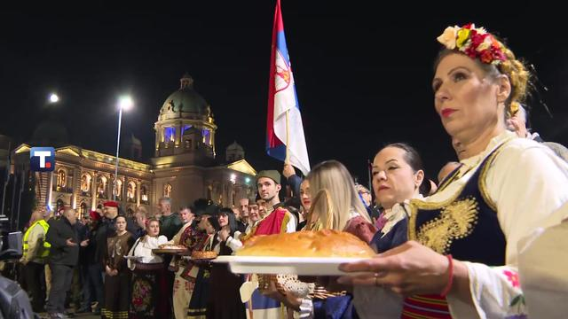 Reporterka javlja da je doček ljudi koji su pre osam dana pošli sa Kosova bio ispraćen bakljama, kao i aplauzom koji je, ocenjuje, bio blag. Njih je pozdravila samo grupa ljudi pored koje su tik prošli, dok ostatak građana, među kojima se nalazila i naša ekipa, taj doček gotovo da nisu primetili.