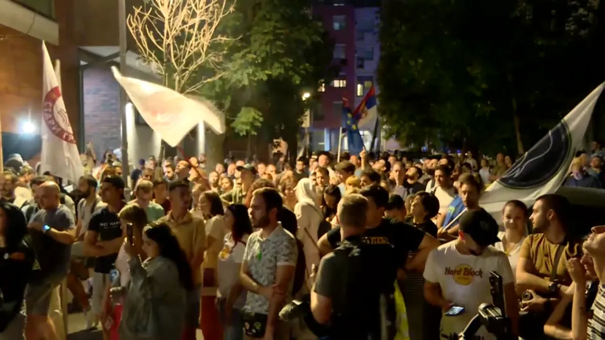 Okupljeni na večerašnjem skupu traže da raspišu vanredni izbori.