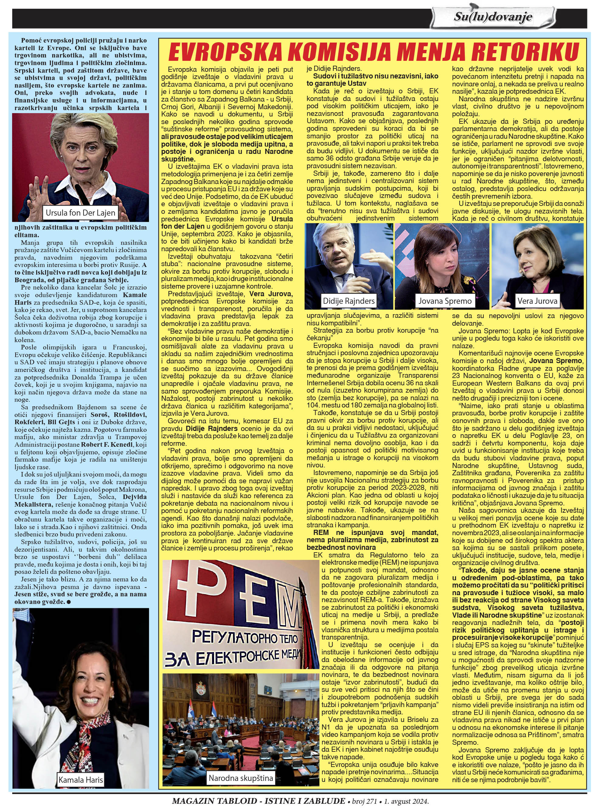 Objavljeni izveštaji Evropske komisije o vladavini prava sasvim drugačije, od prethodnih, opisuje stanje u Srbiji: U Srbiji pravosuđe je „visoko politizovano“, sloboda medija upitna, ograničenja u radu Skupštine… Dah zapadnog vetra se oseća…