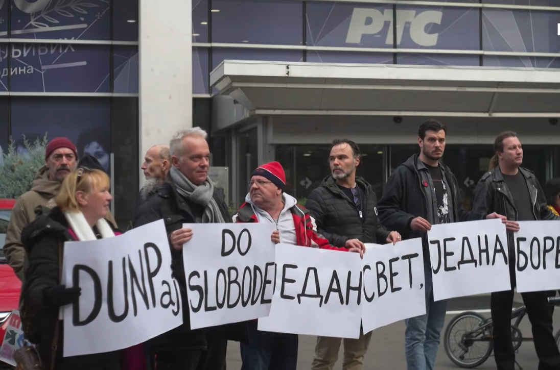 Glumica Lena Bogdanović je objasnila da su nastavili tradiciju okupljanja ispred RTS-a kako bi se usprotivili, kako kaže, tome što javni servis ne informiše o onome što se dešava.