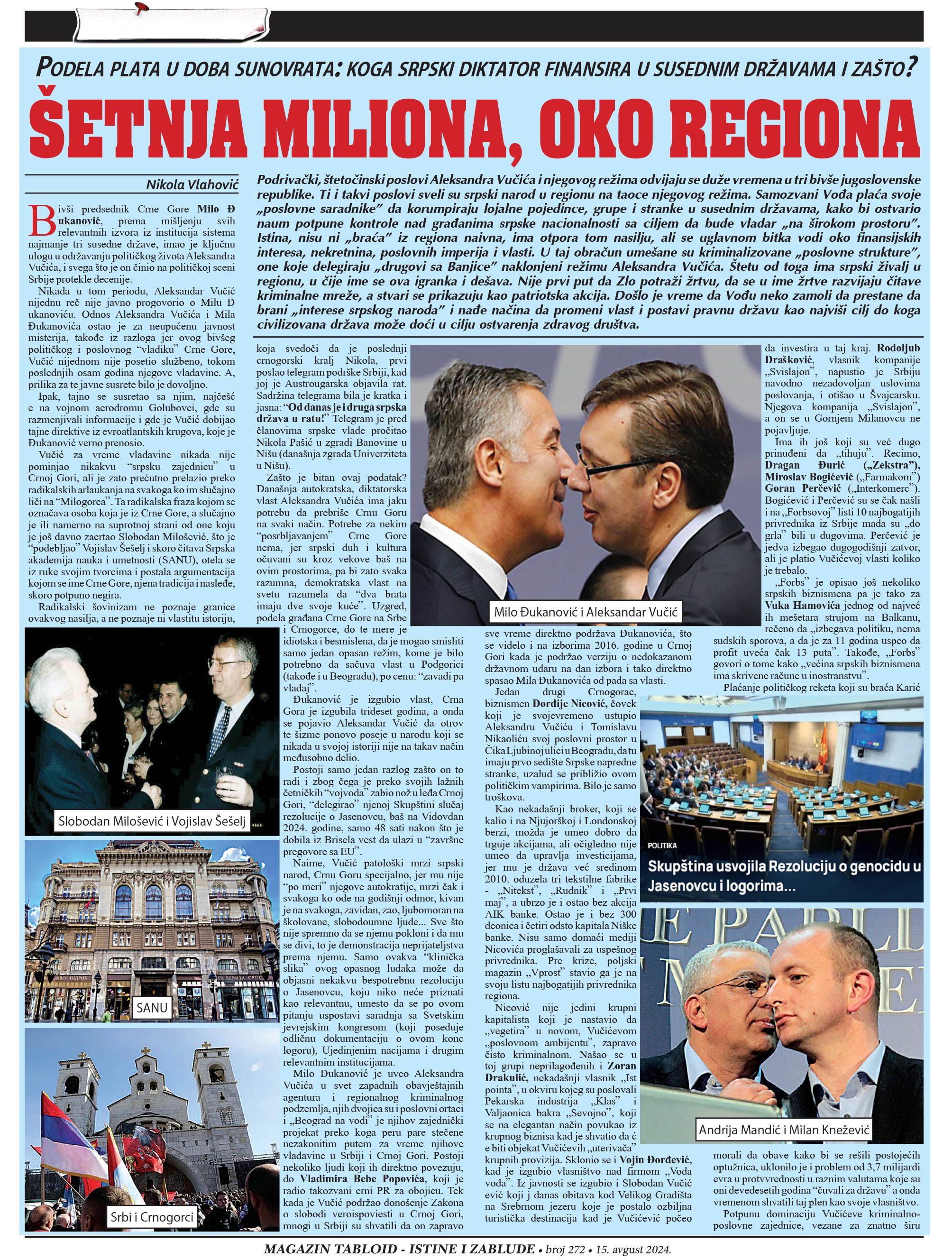 Bivši predsednik Crne Gore Milo Đukanović, prema mišljenju svih relevantnih izvora iz institucija sistema najmanje tri susedne države, imao je ključnu ulogu u održavanju političkog života Aleksandra Vučića, i svega što je on činio na političkoj sceni Srbije protekle decenije.