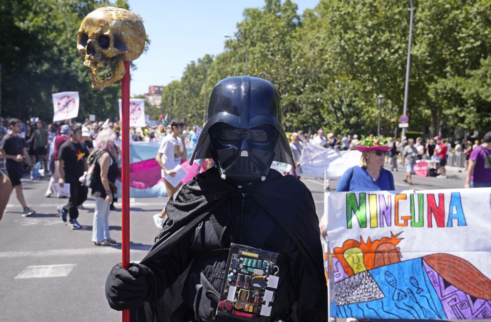 Duga kolona sastavljena od aktivista levice, antikapitalista, ekologa, feminista, komunista, alterglobalista i drugih pokreta kao što su ekološki pokreti „Petak za budućnost“ i „Pobuna protiv izumiranja“ mirno je prošetala uz veliku policijsku pratnju da osudi održavanje narednog samita NATO u Madridu od 28. do 30. jula.