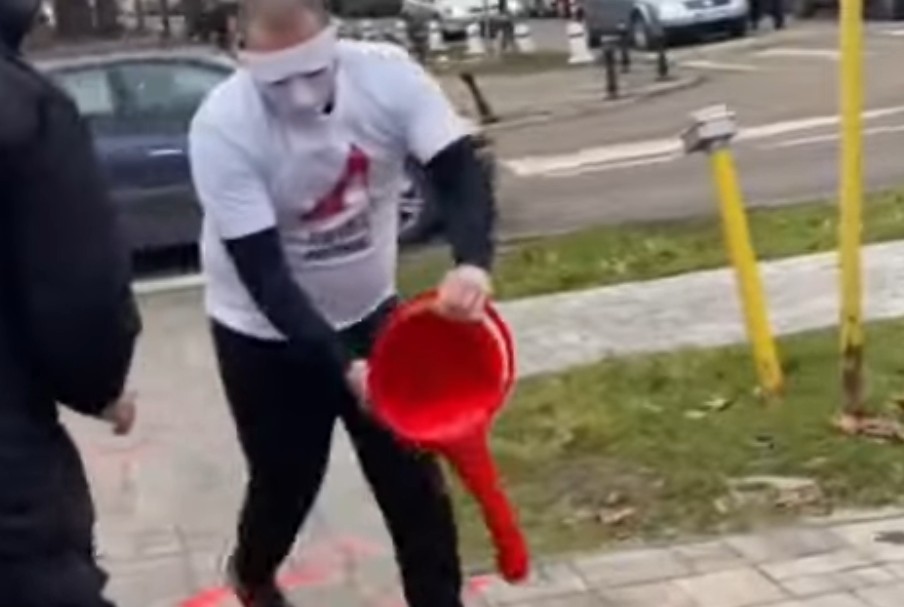 „Ono što se danas desilo je skandalozno. Njih trojica su prišli našem standu i počeli da prosipaju farbu, na šta policija nije regovala pa je došlo do građanskog hapšenja“, navodi.