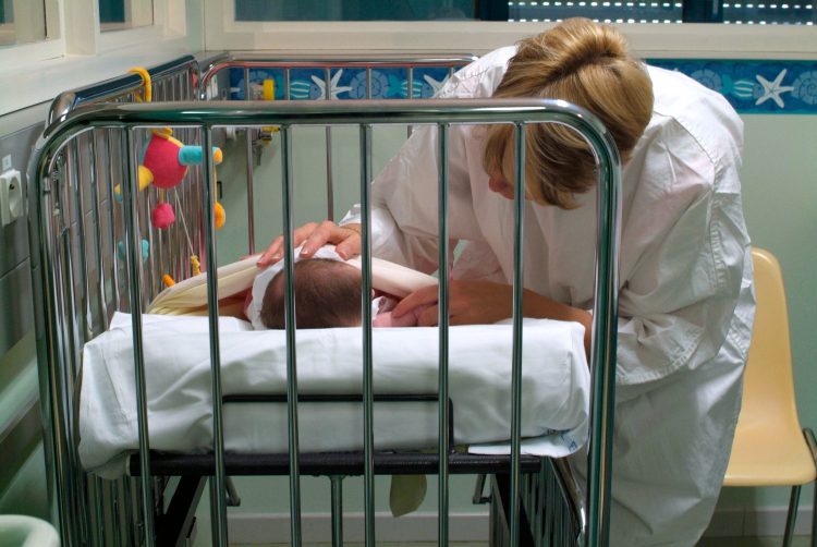 Prizor iz porodilišta u Požarevcu, na kom se vidi kako pacijentkinje greju flaše vode na radijatoru,
