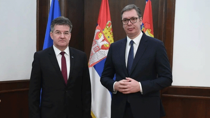 „Naglasio sam neophodnost primene dogovora o Zajednici srpskih opština i poštovanja prava i volje našeg naroda”, saopštio je Vučić posle sastanka s Lajčakom, preneo je Tanjug.