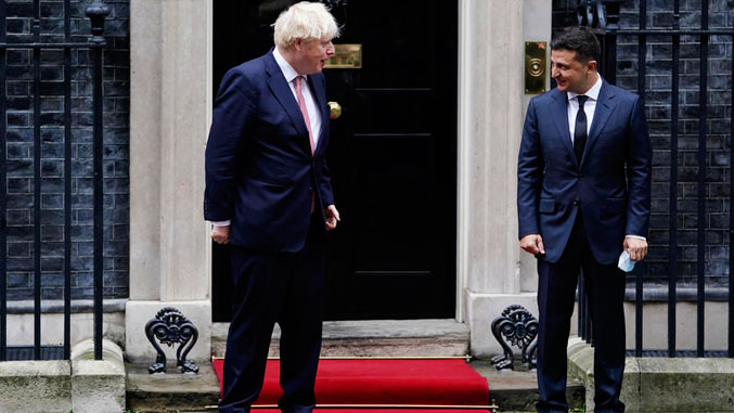 Britanski premijer Boris Džonson uručio je virtuelno ukrajnskom predsedniku Volodimiru Zelenskom nagradu Vinston Čerčil za liderstvo.